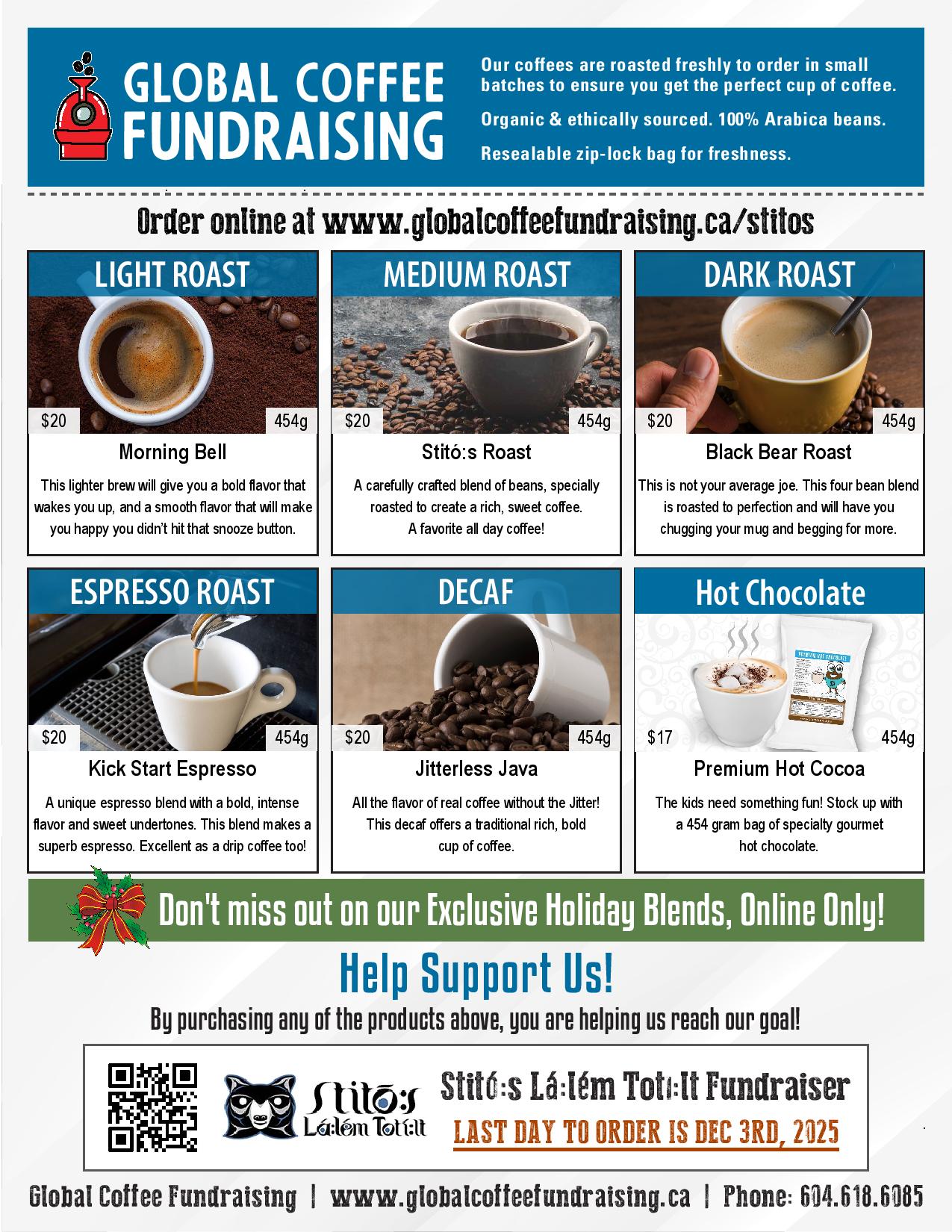 Global Coffee Fundraiser - Ever fall we partner up with Global Coffee Fundraising located in Maple Ridge. They offer premium locally roasted and packaged coffee in whole bean or pre ground. All proceeds from the fundraiser will go towards reducing the cost of the grade 8 band trip for each student who attends.